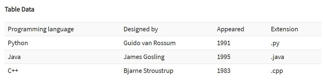 ['Programming language; Designed by; Appeared; Extension']